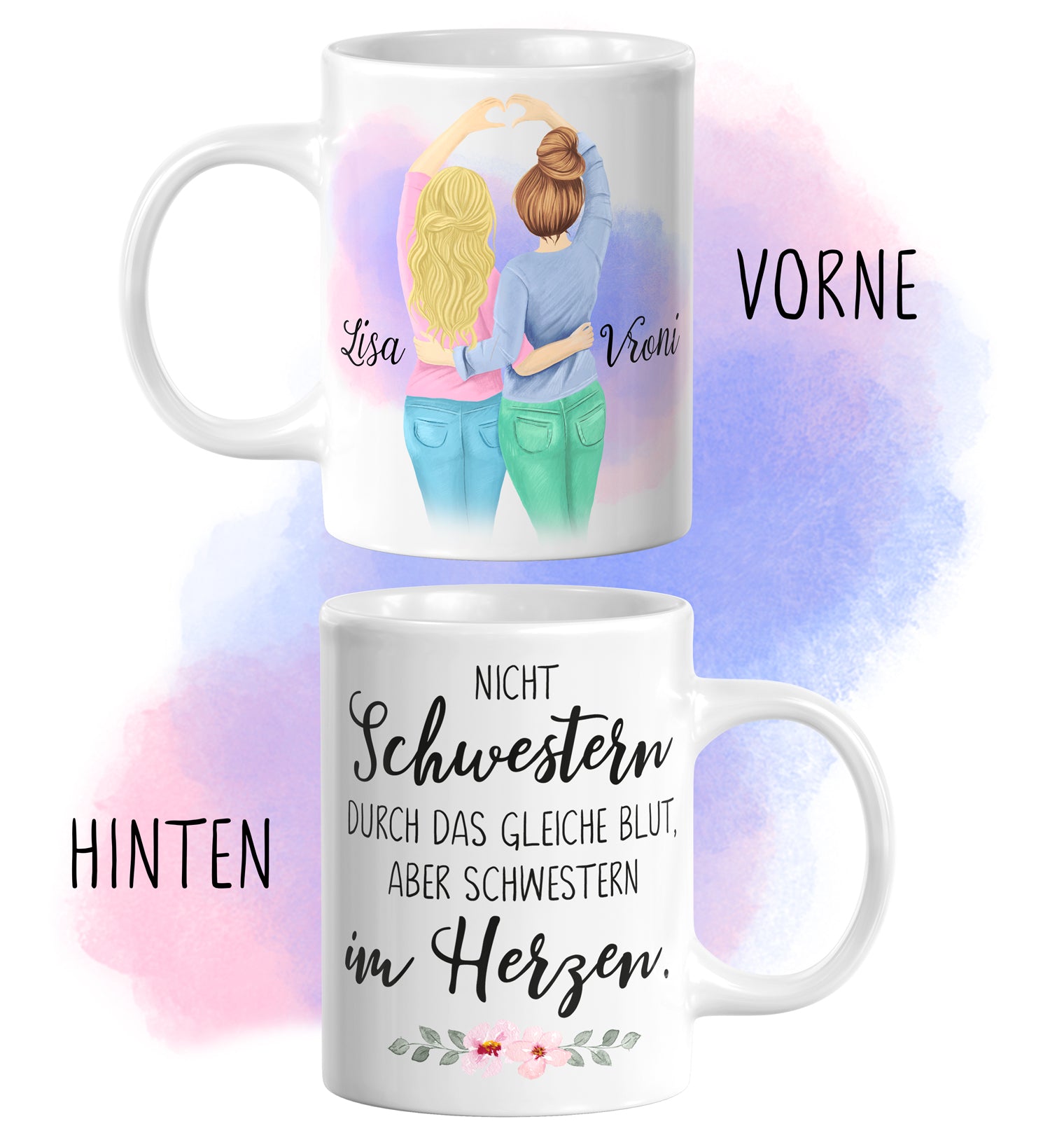 Der optionale Aquarell Hintergrund wirkt sehr edel und feminin auf den hochweissen Keramiktassen. Jede Tasse wird nach der Bestellung individuell in Deutschland gefertigt. Die Illustrationen wurden in liebevoller Detailarbeit von uns gezeichnet.