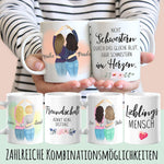 Die Tasse ist komplett personalisierbar und passt damit perfekt zur beschenkten Person. Wähle im Konfigurator zwischen zahlreichen Optionen. Du kannst den Hintergrund, die Hautfarbe, die Frisur, die Farbe der Kleidung und den Namen anpassen.