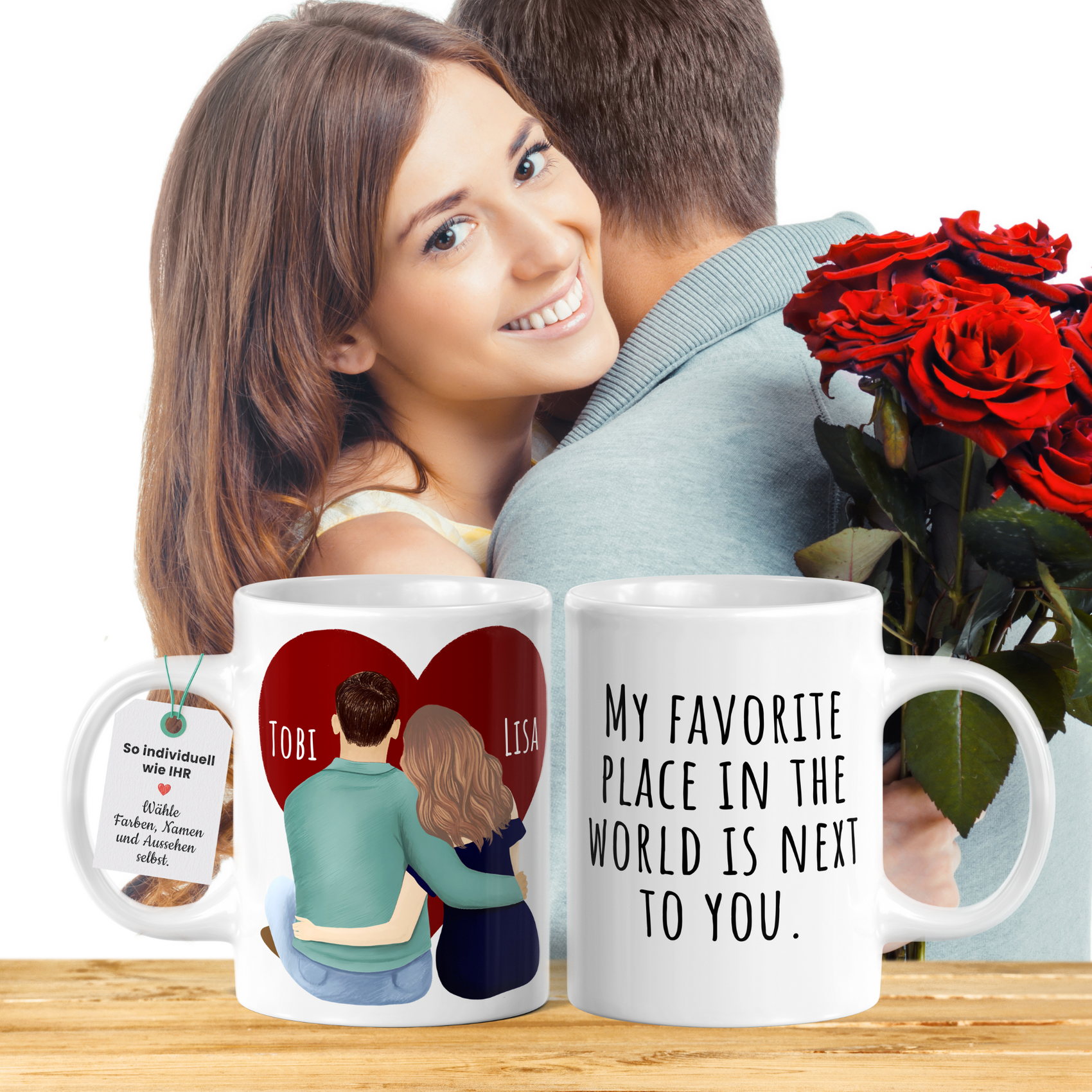 Wenn du deinem Partner etwas ganz besonderes schenken möchtest, ist das eine sehr persönliche und schöne Idee. Die Tasse ist komplett personalisierbar und passt damit perfekt zur beschenkten Person. Wähle im Konfigurator zwischen zahlreichen Optionen. Du kannst den Hintergrund, die Hautfarbe, die Frisur, die Farbe der Kleidung und den Namen anpassen.